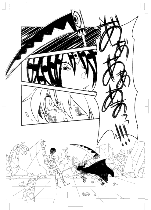 外枠とか断ち切り線とか丸きり判らぬまま描いたもんだから鎌ソウルが思いっきり切れてます。あああーごめんよソウル。